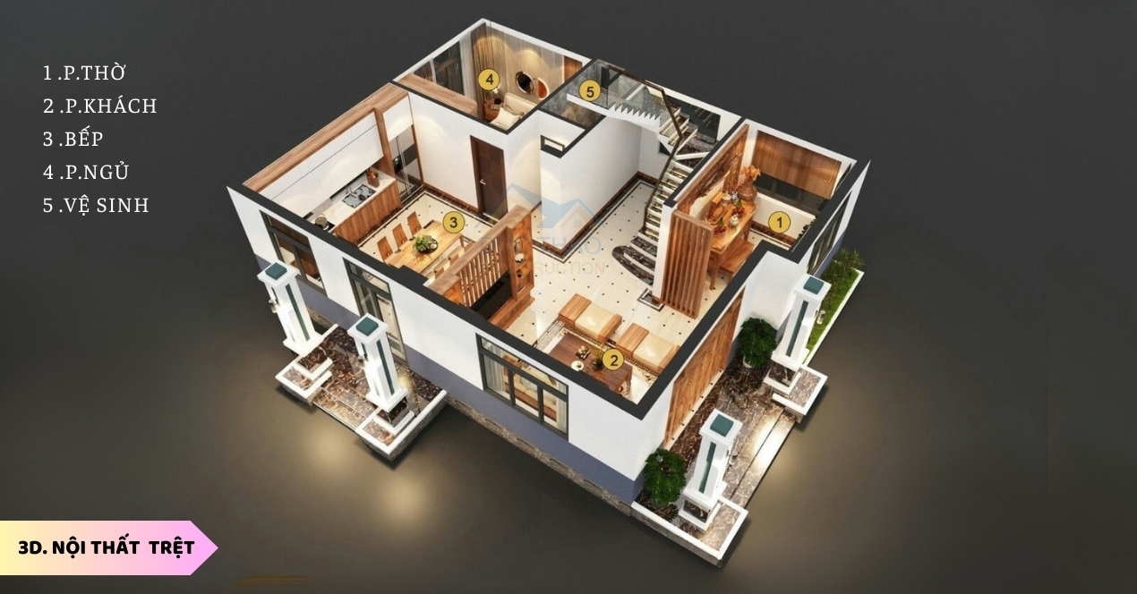 | Tầng 2 | 3 phòng ngủ thường + 1 phòng thờ + WC + ban công |