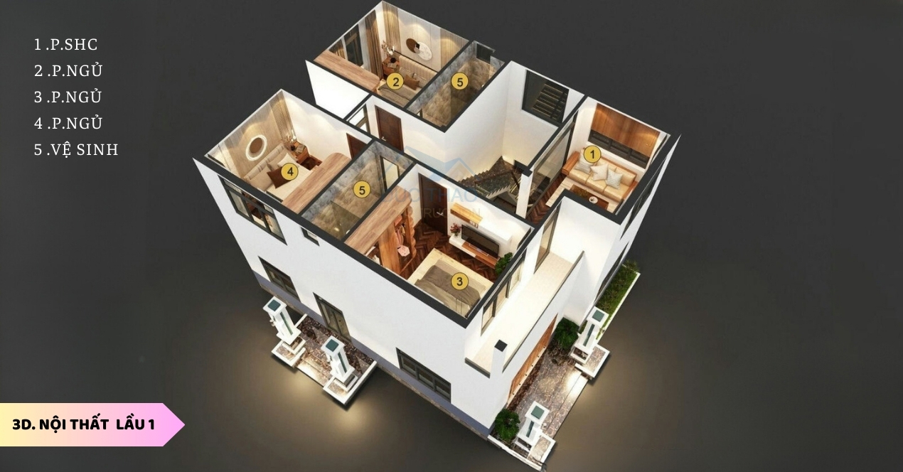 | Tầng 1 | Phòng khách + Phòng ăn & phòng bếp + 1 Phòng ngủ + WC |
