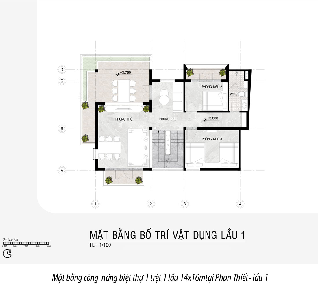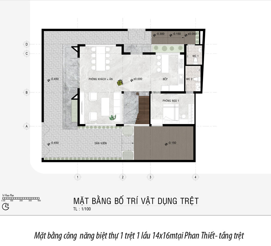 - Diện tích XD: 14m x 16m