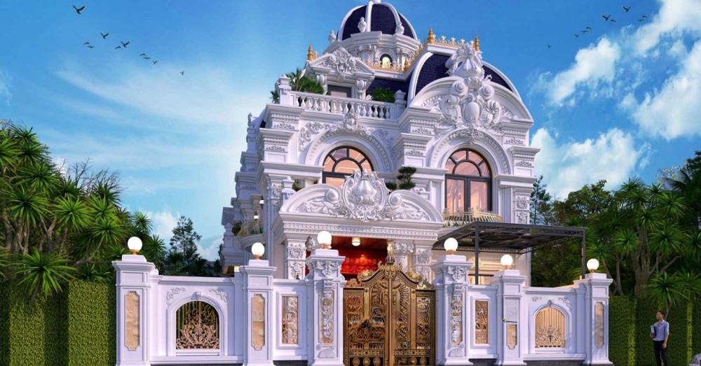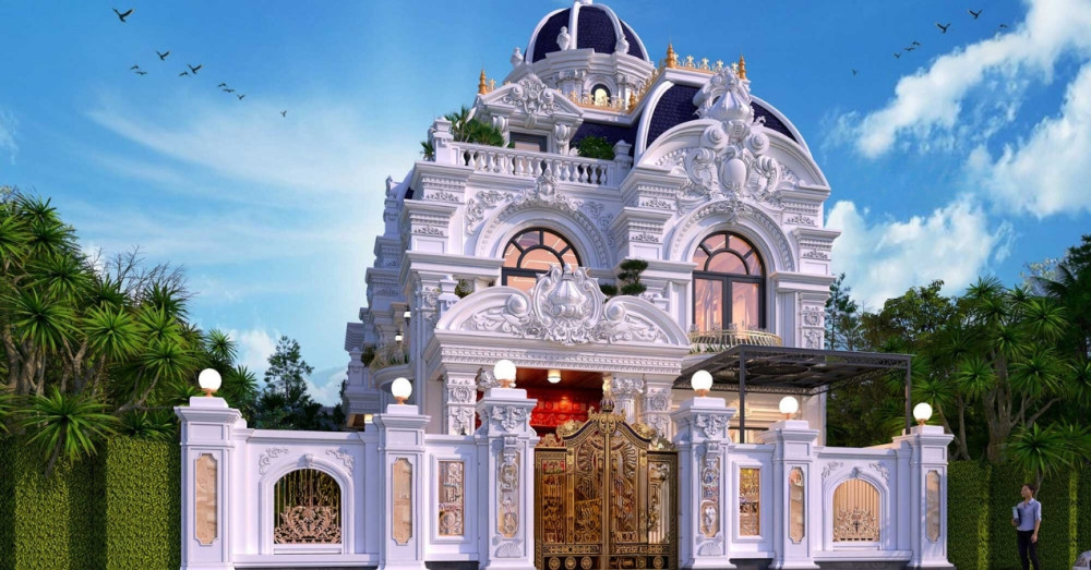 Bên trong, lâu đài biệt thự tân cổ điển tại Ninh Bình không chỉ xuất sắc về kiến trúc mà còn cực kỳ tiện nghi và đầy đủ các tiện ích hiện đại. Từ phòng khách sang trọng, phòng ngủ rộng rãi đến khu vực giải trí và thư giãn, mọi không gian đều được chăm chút tỉ mỉ để tạo nên sự sang trọng và thoải mái tối đa cho cư dân.Không chỉ là một công trình kiến trúc xuất sắc, mà lâu đài biệt thự tân cổ điển tại tỉnh Ninh Bình còn nằm trong vị trí đắc địa, mang lại tầm nhìn tuyệt vời ra khung cảnh thiên nhiên hữu tình và yên bình.Tóm lại, mẫu lâu đài biệt thự tân cổ điển tại tỉnh Ninh Bình không chỉ là một tác phẩm kiến trúc đẳng cấp mà còn là biểu tượng của sự hài hòa giữa vẻ đẹp cổ điển và tiện nghi hiện đại, đem đến trải nghiệm sống đẳng cấp và đẳng cấp cho cư dân.
