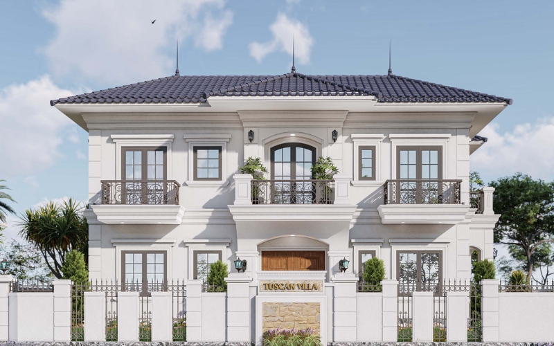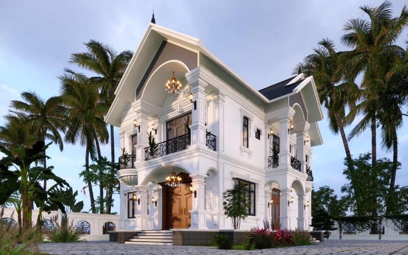 Biệt thự 2 tầng tân cổ điển là lựa chọn phổ biến cho nhiều gia đình hiện nay. Thiết kế này mang đến vẻ đẹp thanh thoát nhưng vẫn đầy đủ tiện nghi. Các chi tiết trang trí không quá cầu kỳ nhưng vẫn đảm bảo tính thẩm mỹ cao. Thiết kế mái Thái hoặc mái Nhật để tạo nên vẻ đẹp nhẹ nhàng và thanh thoát cho căn biệt thự.