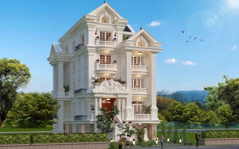 Mẫu biệt thự 5 tầng tân cổ điển tuân thủ theo các nguyên tắc đối xứng