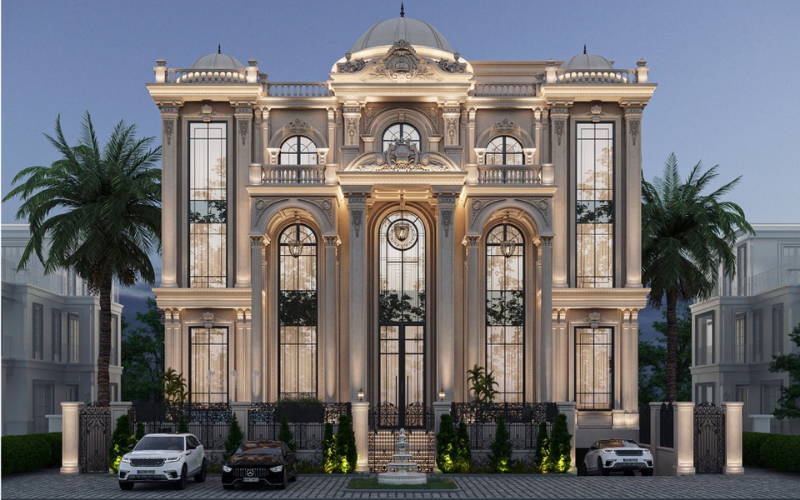 Mẫu thiết kế biệt thự với hệ thống mái vòm tân cổ điển Châu Âu