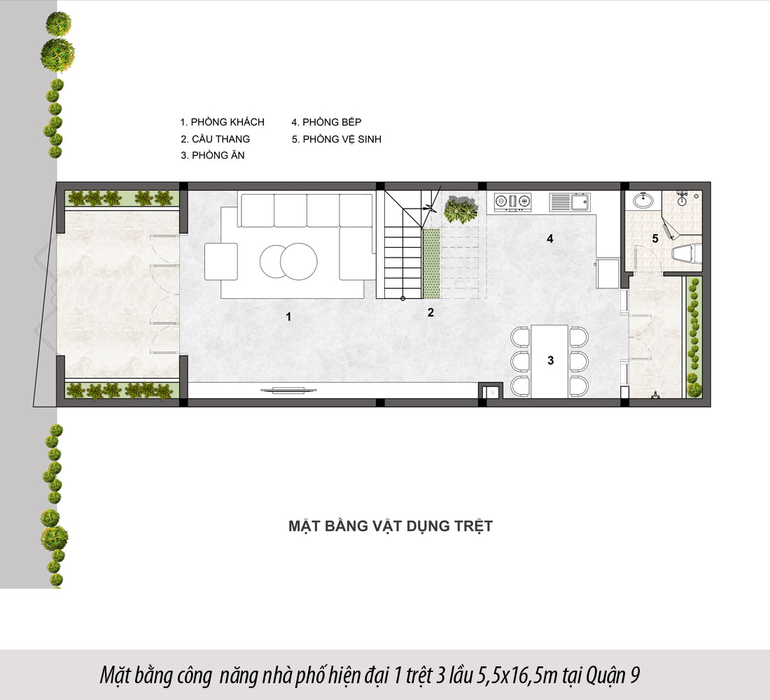 - Diện tích XD: 5,5m x 16,5m